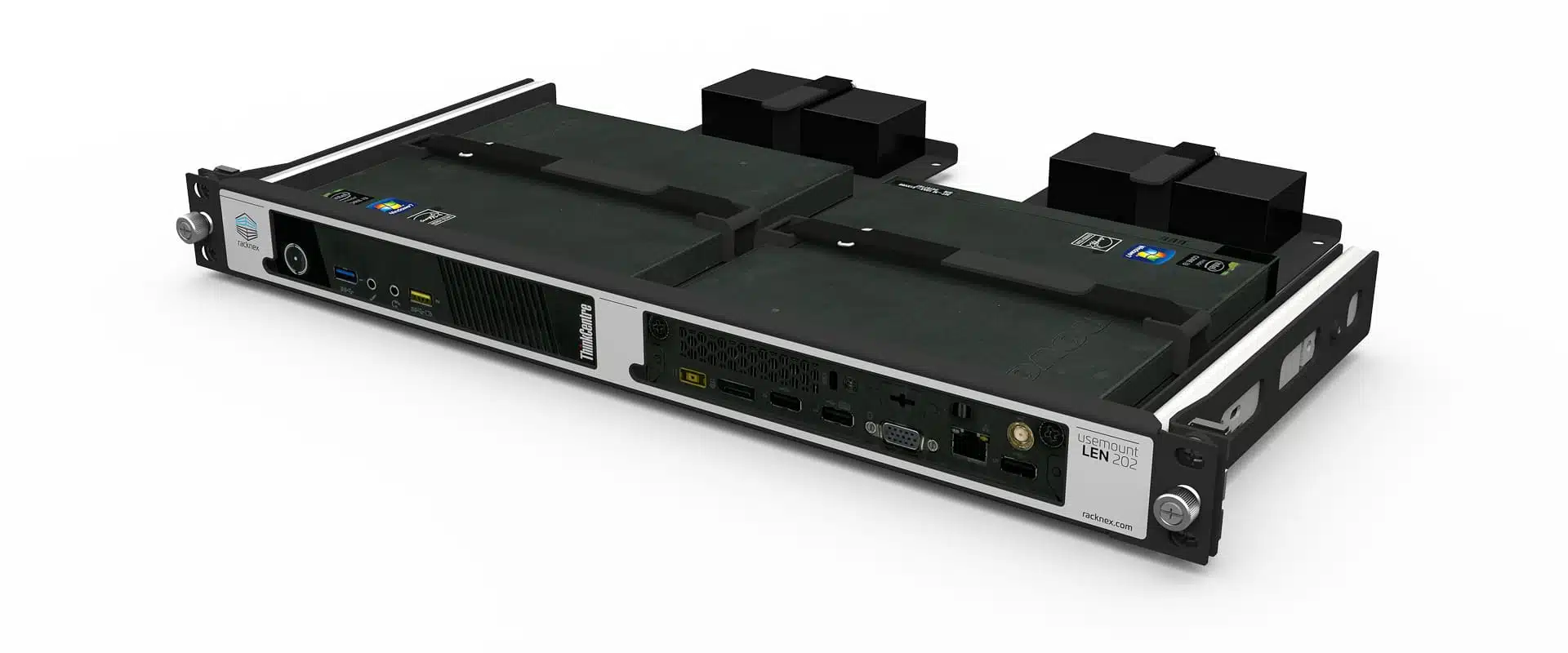 Montez avec précision jusqu’à deux Lenovo ThinkCentre Tiny ou ThinkStation Tiny dans votre rack de serveur 19 pouces grâce au kit de montage en rack Lenovo 19″ « UM-LEN-202 ». Ce kit vous permet de fixer en toute sécurité vos mini-PC Lenovo avec leurs alimentations associées sur 1U dans votre rack 19 pouces.